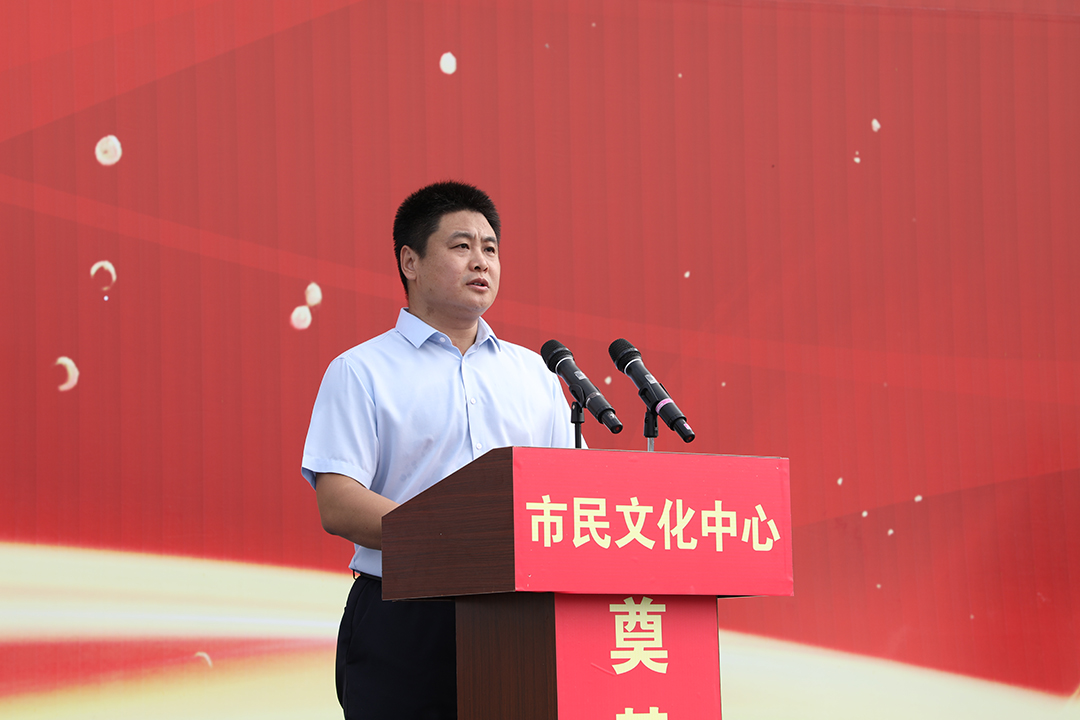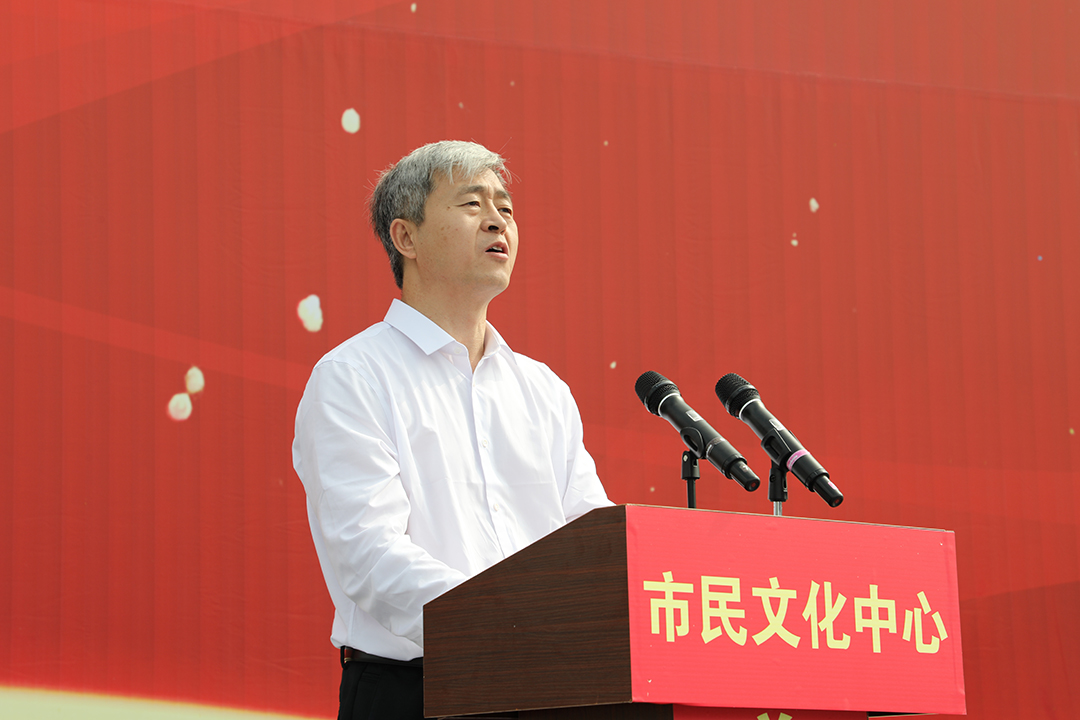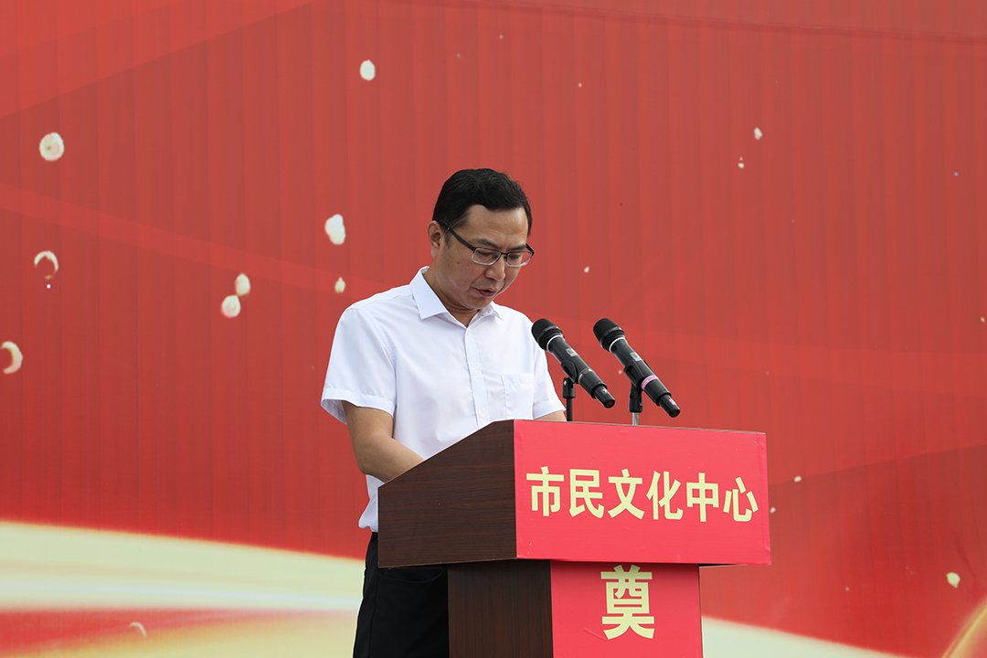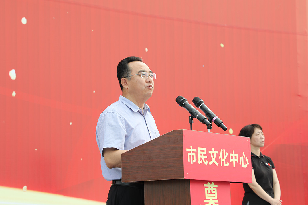 為帶動城市建設(shè)和文化產(chǎn)業(yè)的高質(zhì)量發(fā)展,提升市民的幸福感和滿意度,6月28日上午,市民文化中心項目正式開工建設(shè)。區(qū)委書記王宏偉致辭并宣布項目開工,區(qū)委副書記、區(qū)長王驍主持儀式,區(qū)人大常委會主任于立武、區(qū)政協(xié)主席劉英會、區(qū)委常委、副區(qū)長屈耀武、區(qū)委常委、區(qū)委辦公室主任龔標(biāo)、區(qū)政協(xié)副主席顏丙華、龍橋街道黨工委書記顏丙輝、區(qū)住建局局長鄒紅、山東兗建黨委書記、總經(jīng)理孫志剛及天津城市規(guī)劃設(shè)計研究院副院長侯勇軍、蘇州金螳螂集團有限公司副總裁王進參加了奠基儀式。